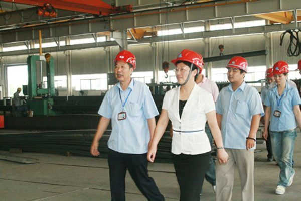 2008年9月2日,溫嶺市市長葉海燕在有關部門領導的陪同下蒞臨我司檢查指導救災安置活動房的生產(chǎn)工作。