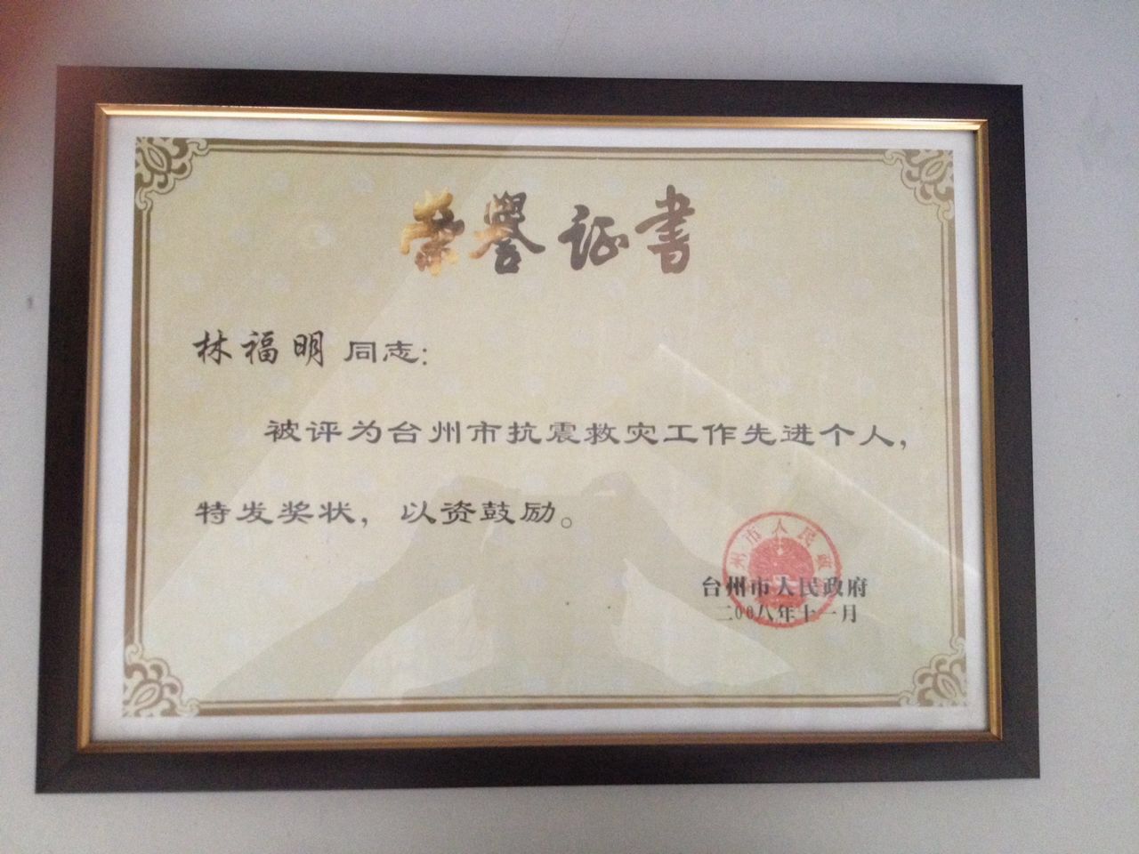 林福明市抗震救災(zāi)先進(jìn)個(gè)人