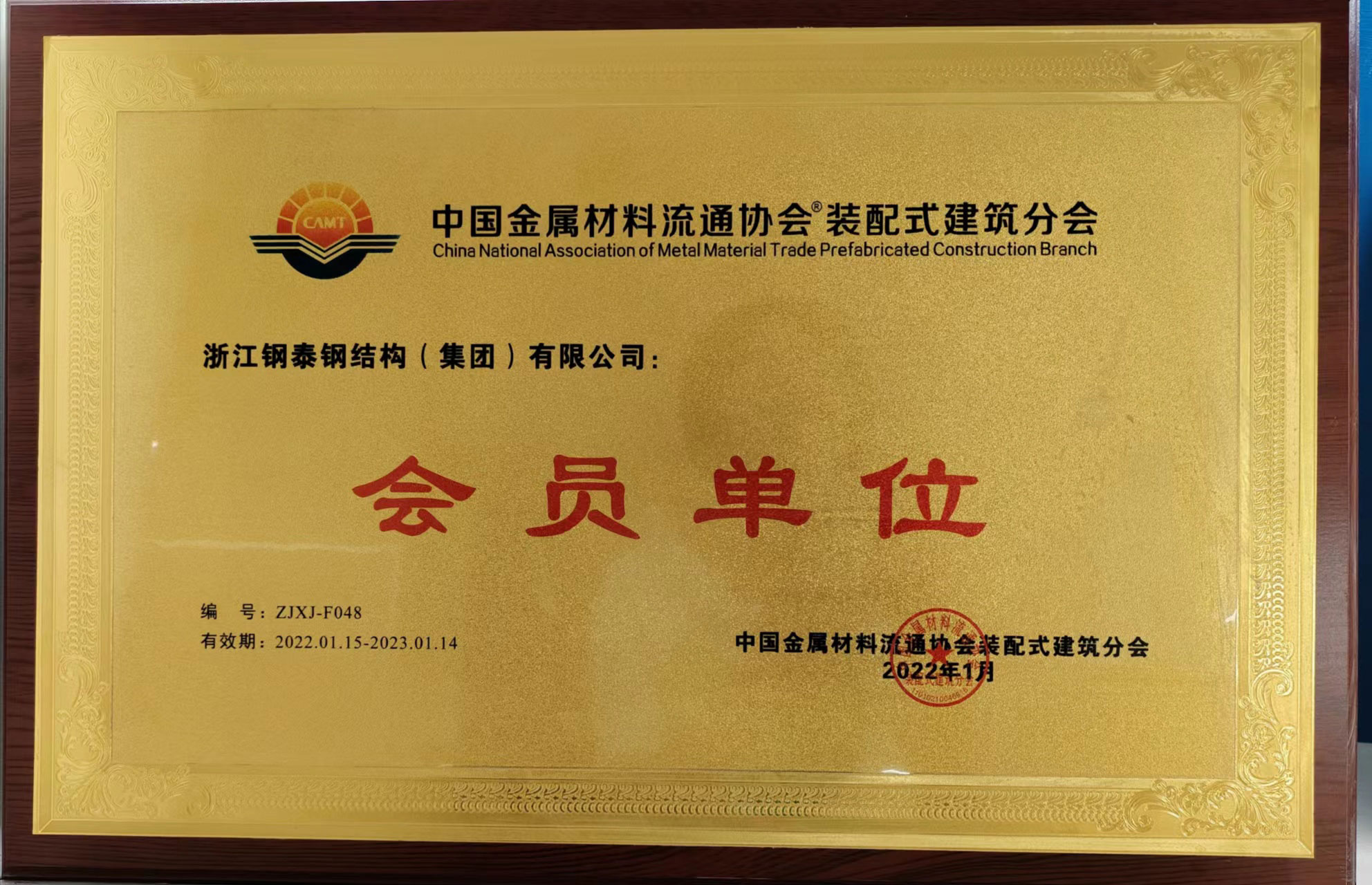 浙江省鋼結(jié)構(gòu)行業(yè)2022年度先進(jìn)企業(yè)